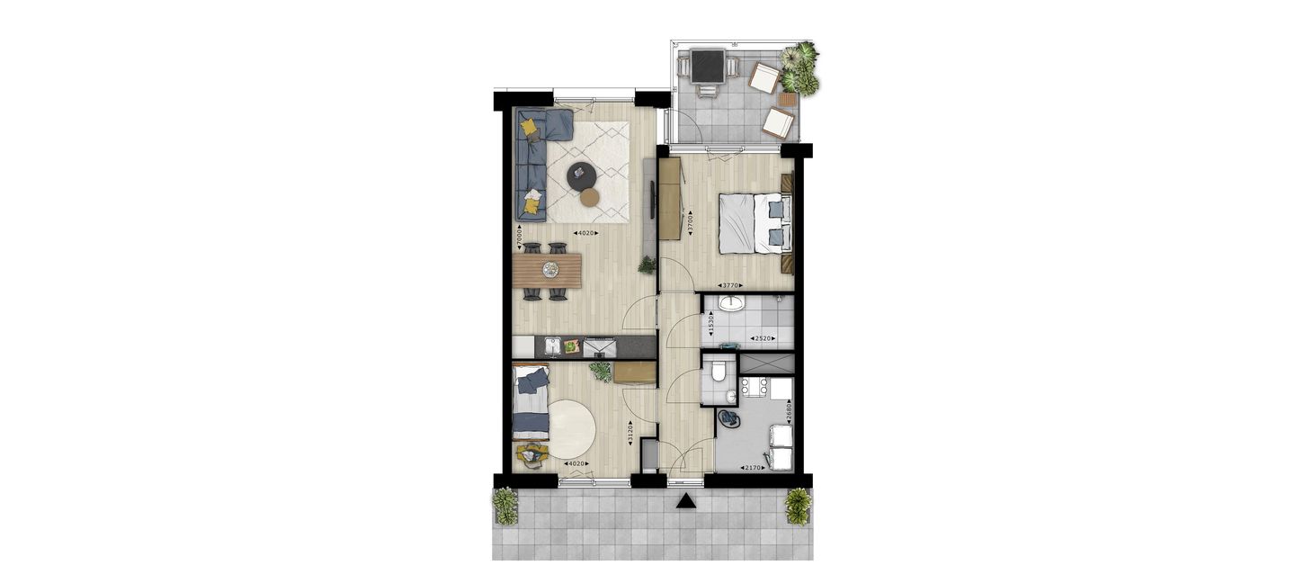 Een heerlijk appartement met twee slaapkamers, een ruime berging en balkon op het Zuiden! De keuken, badkamer, PVC-vloer in kleuren naar keuze en wandafwerking zijn allemaal geregeld als je de sleutel krijgt. En uiteraard zijn de appartementen van type Chelsea voorzien van vloerverwarming en -koeling, volledig geïsoleerd en heb je je eigen hardloopbaan op het dak!