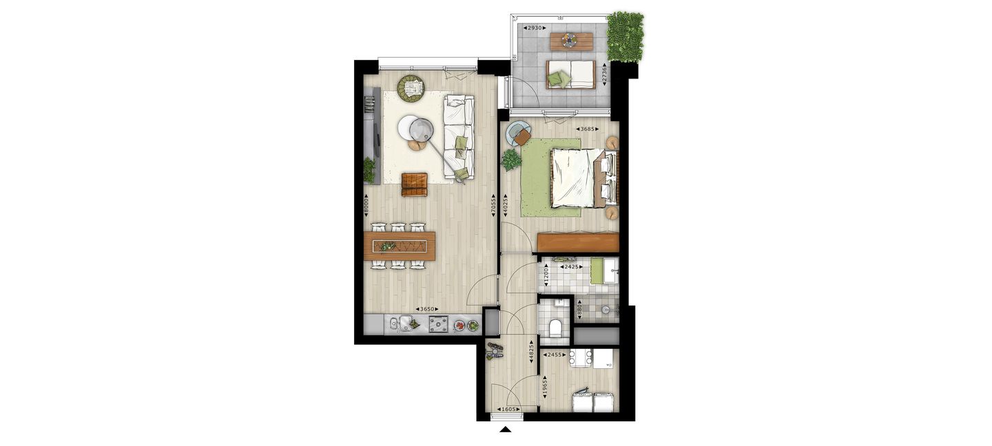 Een heerlijk licht appartement met een slaapkamer en ruime berging. De keuken, badkamer, PVC-vloer in kleuren naar keuze en wandafwerking zijn allemaal geregeld als je de sleutel krijgt. En uiteraard zijn de appartementen van type Bronx voorzien van vloerverwarming en -koeling, volledig geïsoleerd en heb je je eigen hardloopbaan op het dak!